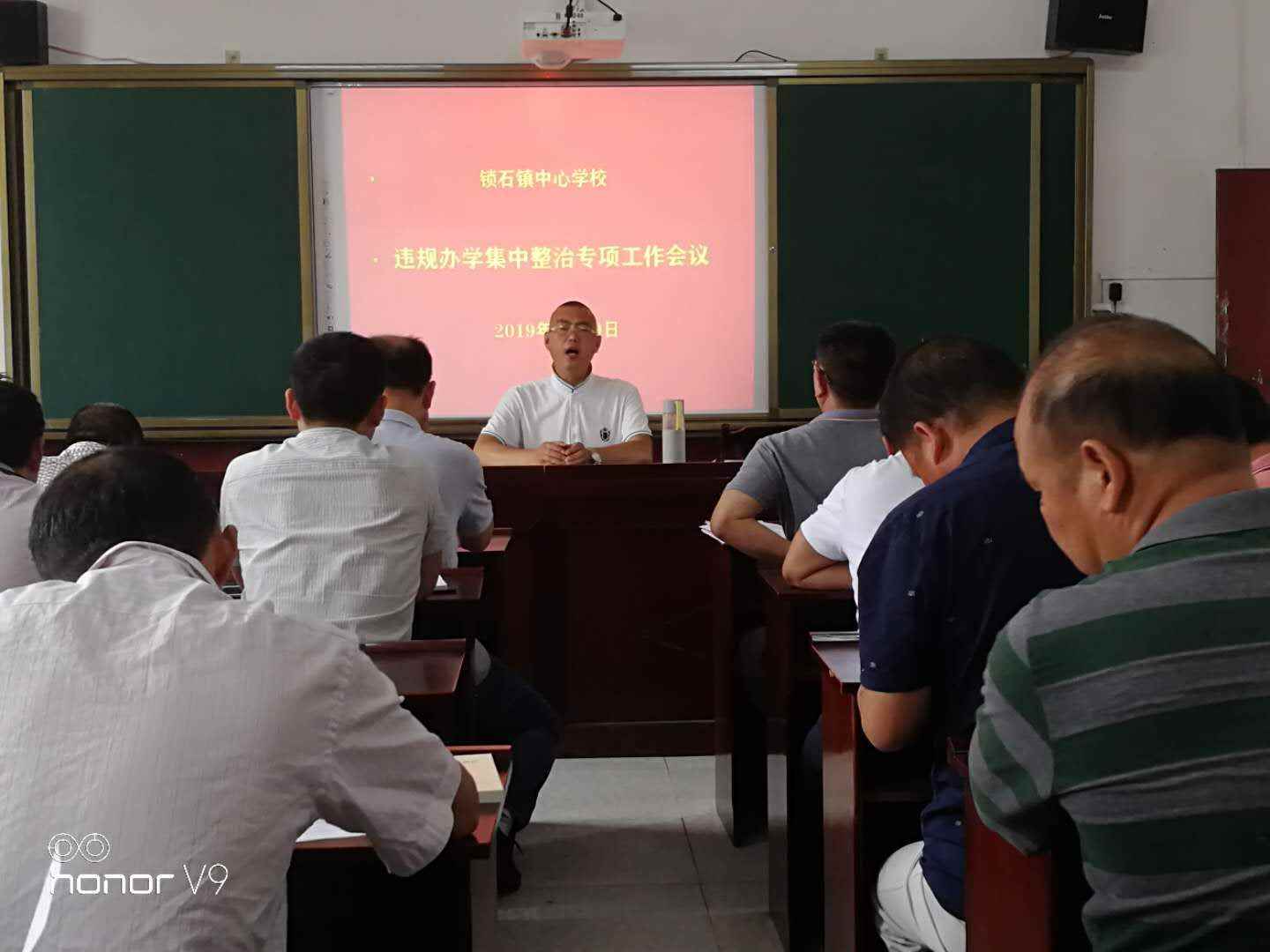 6月10日,双峰县锁石镇中心学校召开违规办学集中整治动员会,向一切违规办学行为坚决说“不”,向一切违规办学人员及时“亮剑”,坚决铲除违规办学滋生的土壤,让教育列车始终沿着正确轨道运行。