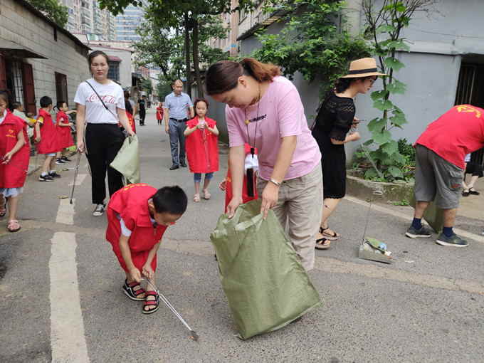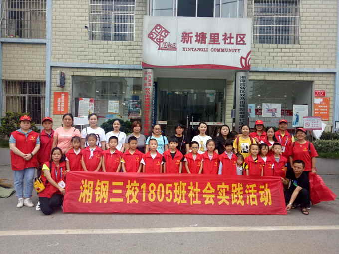 2019年6月16日上午,湘钢三校教育集团1805班14组家庭来到新塘里社区,与莲城志愿者协会一同进行了卫生清扫公益活动。