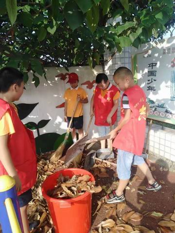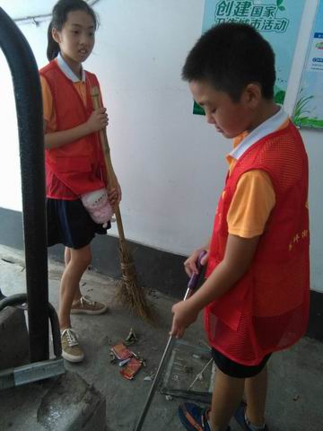 早上 7:00,炎炎夏日,一群红色精灵的志愿者一来到学校,在老师的组织下就拿起撮箕、扫帚、桶子开始了大清扫。活动中,老师、学生、家长志愿者们不怕脏、不怕累,个个汗流浃背,劲头十足,他们扫的扫,捡的捡,夹的夹,互相协作,互相配合。经过1个多小时的打扫,顿时校园面貌焕然一新。