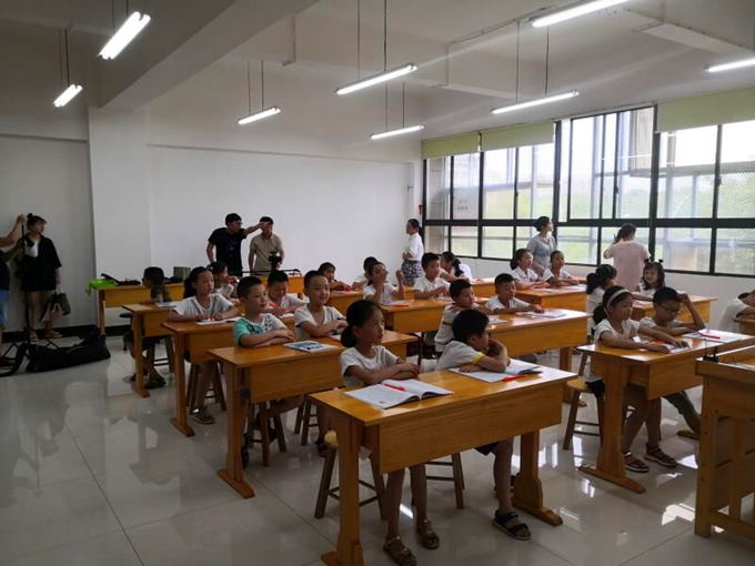 尽管天气炎热,但孩子们不畏酷暑,提前到达活动地点。下午14:30时,活动正式开始。主讲张老师向同学们介绍了此次活动目的和意义,希望同学们能加强对眼睛的保护。活动通过学生上数学课的一个课堂场景进行录制,在装备齐全的摄像机下,孩子们个个挺直腰板,力求能在镜头好好表现一番。课堂上,张老师热情幽默、妙语连珠,孩子们听得津津有味。课题是“巧求周长”,摒除了传统的求图形周长的方法,用生动的例子与奇特的方法,让数学变得有趣易懂。同时,张老师总是提醒书写姿势不正确的孩子,注意坐姿和看书的距离。