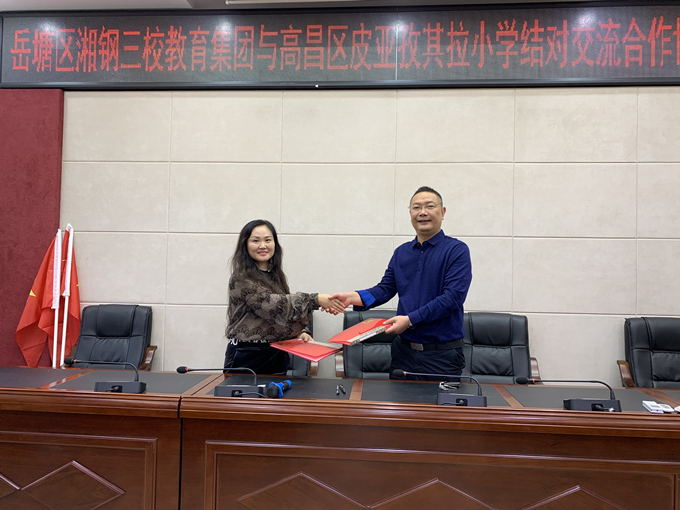 近日,吐鲁番市高昌区亚尔镇皮亚孜其拉小学书记刘鸿峡来到岳塘区湘钢三校教育集团,开启了为期两周的交流活动。