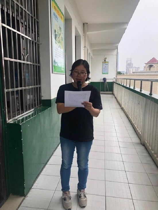 图二:教导主任对全校师生进行“网络安全教育”宣讲