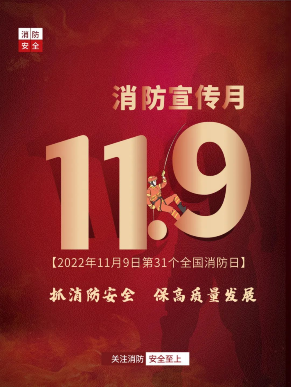 每年11月是消防宣传月,2022年11月9日是第31个全国消防日,今年的主题是:“抓消防安全,保高质量发展”。寒冬逐渐临近,空气日趋干燥,用火用电增加,各种火灾事故日益增多,消防安全工作显得十分重要。为增强大家的消防安全意识,提高自防自救能力,让我们携起手来,共同学习消防安全知识。