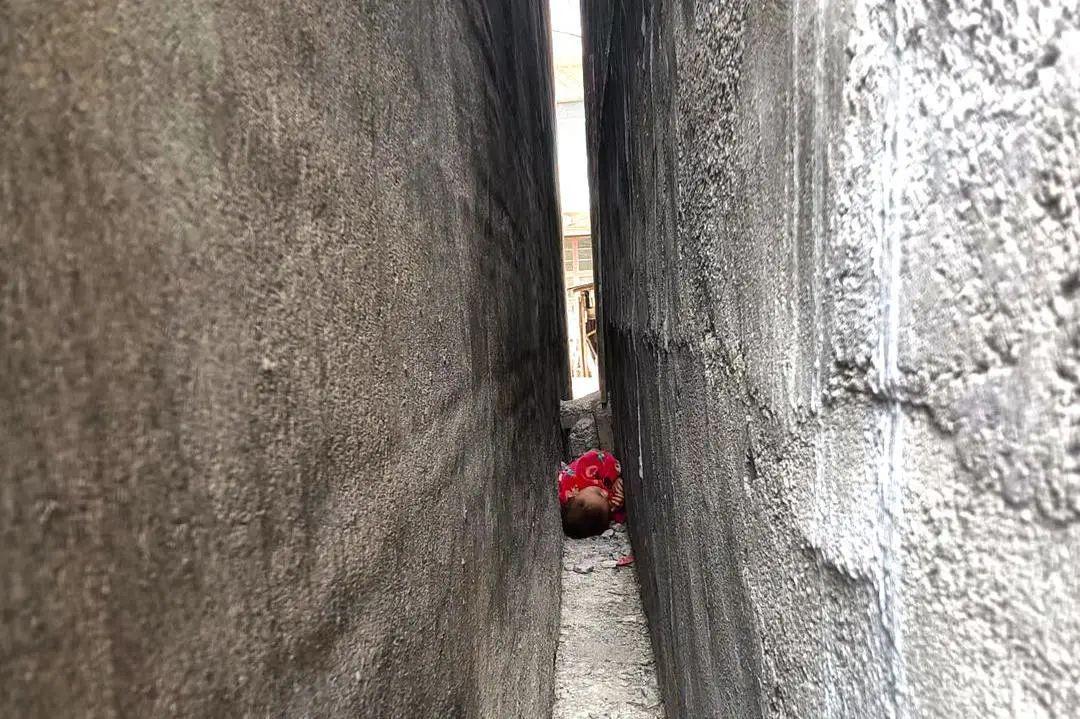 勇敢!幼童被卡墙缝,8岁男孩挺身救援