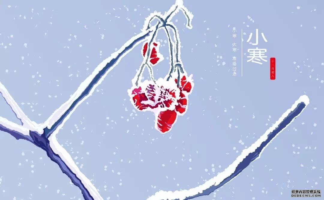 每年1月5日或6日太阳到达黄经285°时为小寒(slight cold),它与大寒、小暑、大暑及处暑一样,都是表示气温冷暖变化的节气。《月令七十二候集解》:“十二月节,月初寒尚小,故云。月半则大矣。”小寒的意思是天气已经很冷,中国大部分地区小寒和大寒期间一般都是最冷的时期,“小寒”一过,就进入“出门冰上走”的三九天了。