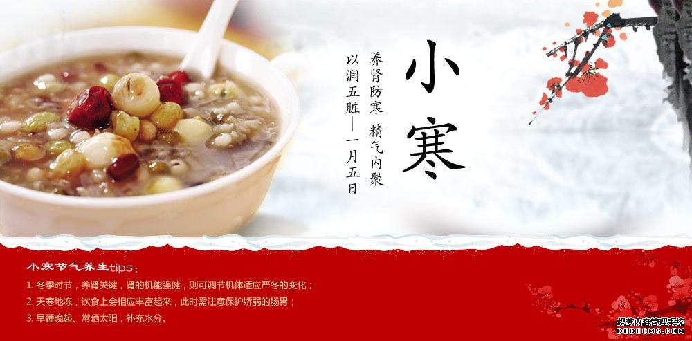 中医认为寒为阴邪,最寒冷的节气也是阴邪最盛的时期,从饮食养生的角度讲,要特别注意在日常饮食中多食用一些温热食物以补益身体,防御寒冷气候对人体的侵袭。日常食物中属于热性的食物主要有鳟鱼、辣椒、肉桂、花椒等;属于温性的食物有糯米、高粱米、刀豆、韭菜、茴香、香菜、荠菜、芦笋、芥菜、南瓜、生姜、葱、大蒜、杏子、桃子、大枣、桂圆、荔枝、木瓜、樱桃、石榴、乌梅、香椽、佛手、栗子、核桃仁、杏仁、羊肉、猪肝、猪肚、火腿、狗肉、鸡肉、羊乳、鹅蛋、鳝鱼、鳙鱼、鲢鱼、虾、海参、淡菜、蚶、酒等。特别要提出的是,小寒时节正是吃麻辣火锅、红焖羊肉的好时节。