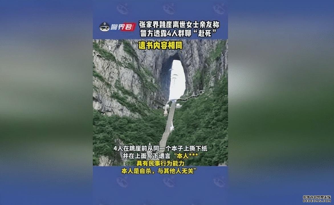 湖南张家界跳崖事件警方公布最新进展:4人群聊“约死”记录,遗书内容一致