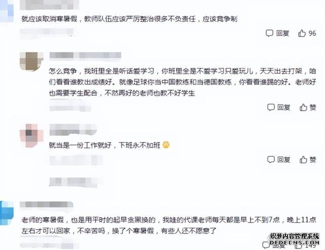 虽然网友们对此提议的支持声越来越大,但老师们却丝毫不急,甚至有高中老师举手赞成。说教师工作轻松这类言辞虽然不对,但把寒暑假取消改为朝九晚五,却也是很多老师心中的期盼。