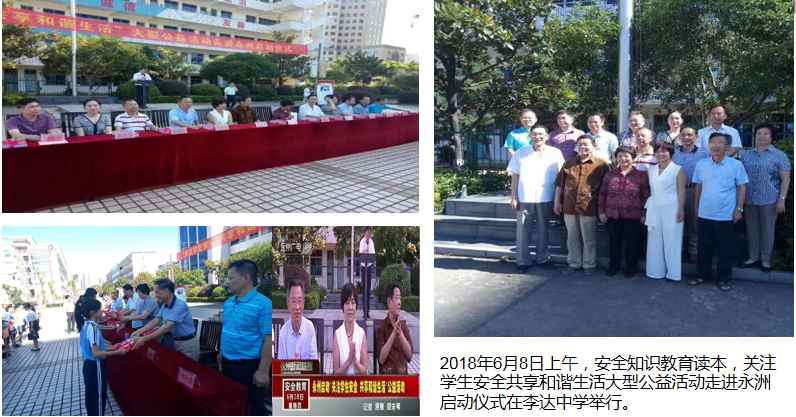 2018年6月8日上午,安全知识教育读本,关注学生安全共享和谐生活大型公益活动走进永洲启动仪式在李达中学举行。