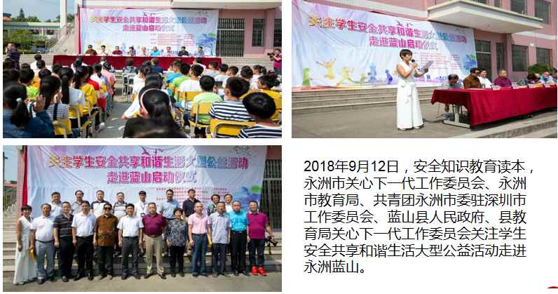 2018年9月12日,安全知识教育读本,关注学生安全共享和谐生活大型公益活动走进永洲蓝山活动集锦