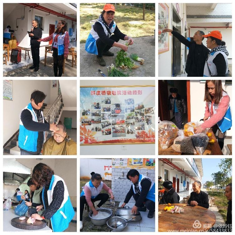 在郝皮桥敬老院,义工们各尽其能大展才艺,有的陪老人晒太阳,聊天,有的为老人们理发,有的在厨房洗菜、切菜,有的表演节目,《感恩的心》巜英雄儿女》《沙家浜》等一首首红歌、京剧响彻敬老院,在互动环节中,敬老院“古稀之年”的盛基爱老人兴致勃勃,高歌一曲又一曲,蠃得全场阵阵掌声。义工们自带食材,自已动手当厨师,炒了丰盛的家常菜,陪老人共进爱心午歺。大家举杯齐祝老人们身体健康,老人们都说感谢党、感谢政府,让他们过上了老年无忧的生活。义工们纷纷表示,会经常来敬老院,看望老人们。