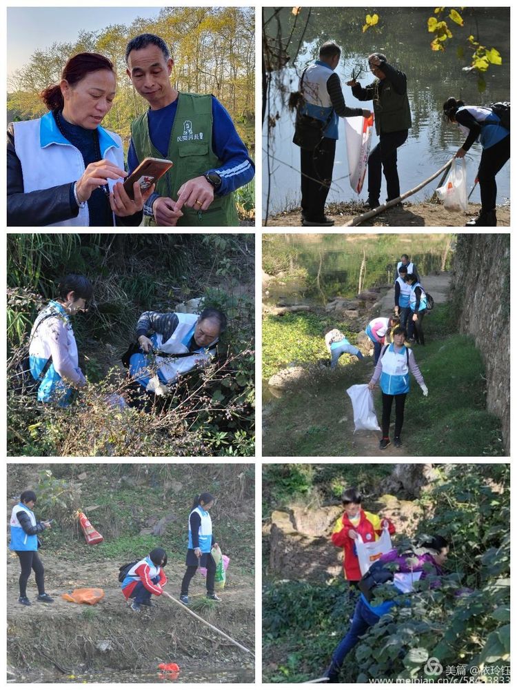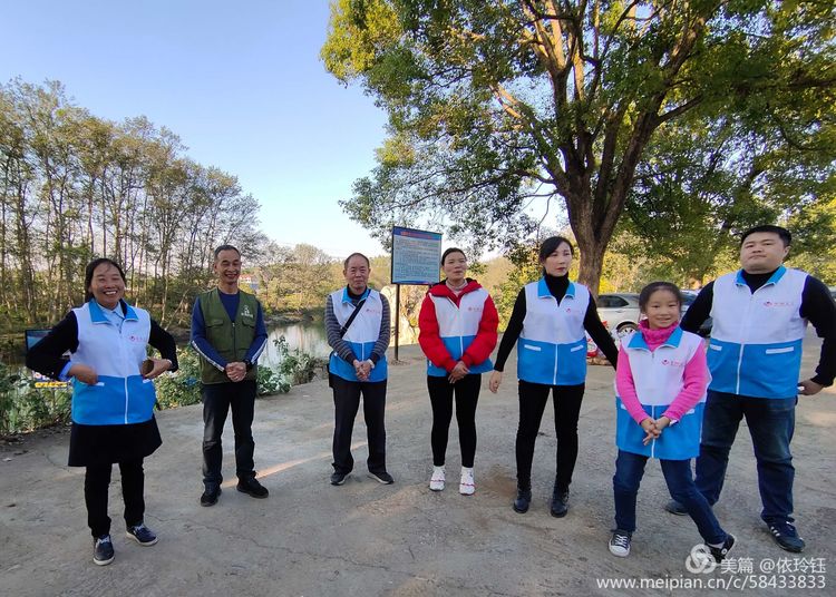 芦洪江畔风景如画,游人纷纷为义工们点赞,在绿水青山环境中,今天再添一道蓝白马甲风景,义工们度过一个快乐的周末。