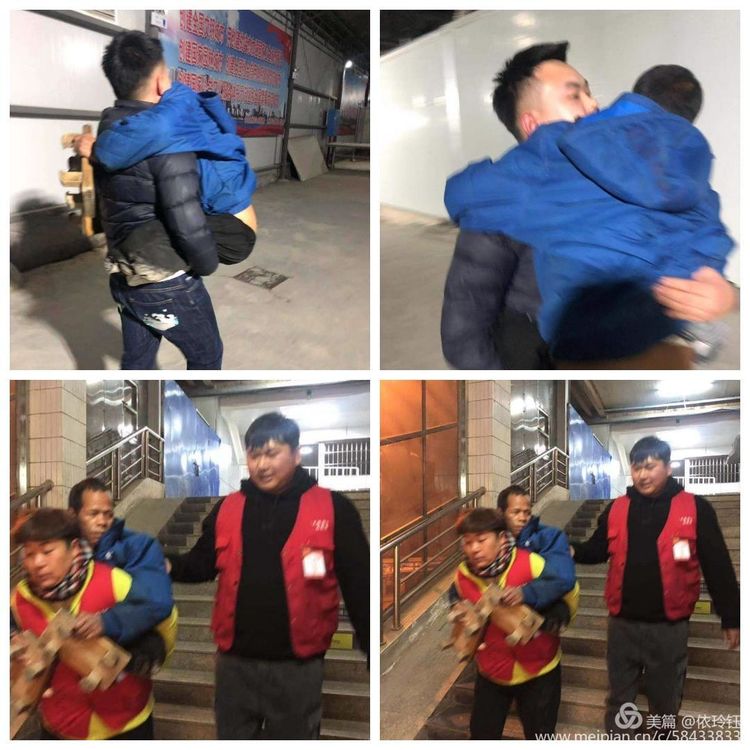 17点54分,北京西开往南宁的T289次旅客列车徐徐进入二站台,志愿者鲁建华在护送无腿小哥进站去江永县,这时有一位年青旅客从后面赶来,并自告奋勇说“我来抱吧”抱起来就往车站里面走,一直抱到天桥上,志愿者孙晓平和唐疏镠也在送客去2站台返回,在天桥上接过这趟服务重点旅客的接力棒,孙哓平背着无腿旅客过天桥,下五十多个台阶过进入二站台,直接背着旅客送进车厢,旅客说“感谢永州志愿者”车厢旅客纷纷为志愿者点赞!来了一段爱心旅客和志愿者的接力护送重点旅客上车的场景,旅客的行为感动志愿者,志愿者的服务感动更多的旅客。