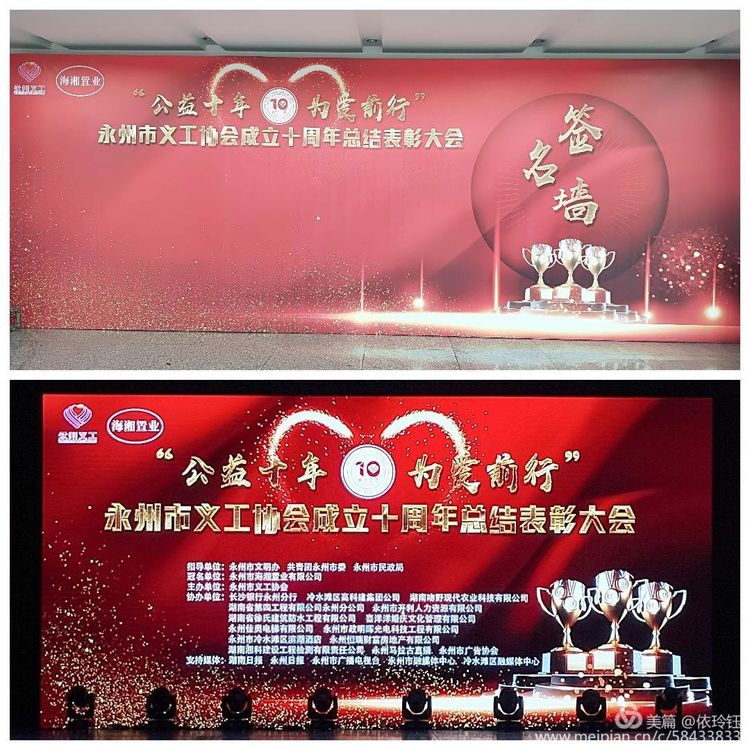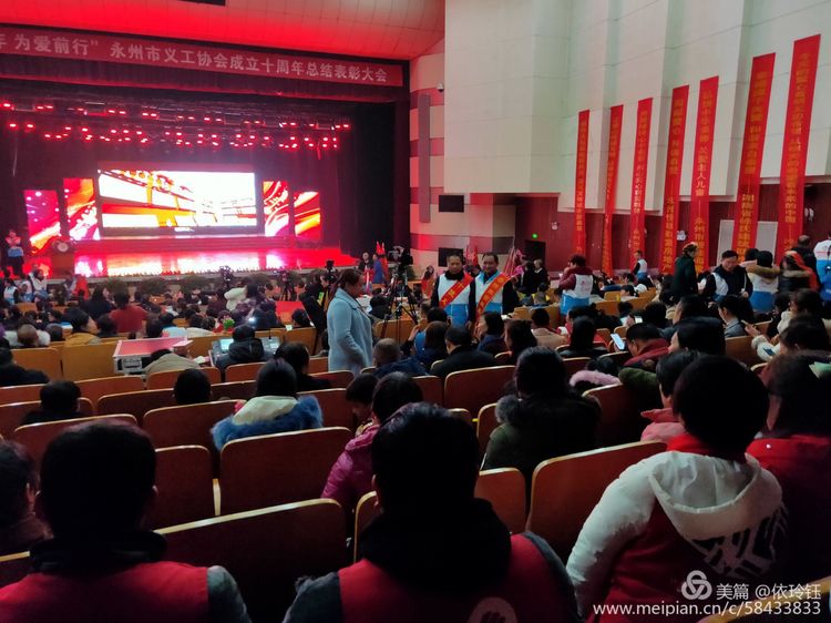 2019年12月29日,在市文明办、共青团永州市委、市民政局指导下,“公益十年 为爱前行”永州市义工协会成立十周年总结表彰大会在永州经开区长丰俱乐部举行,大会由海湘置业有限公司冠名,永州市义工及家人朋友,各县区分会代表,名志愿服务队代表,各爱心单位代表参加,座无虚席。