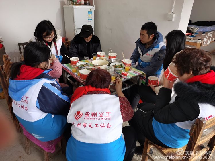 2019年农历十二月三十日,传统佳节春节到来之际,永州市义工协会会长王宗清带领义工冒雨驱车来到马坪开发区独居的耄耋老人刘高云家中,陪他过除夕,送上礼物,送上新年的祝福。