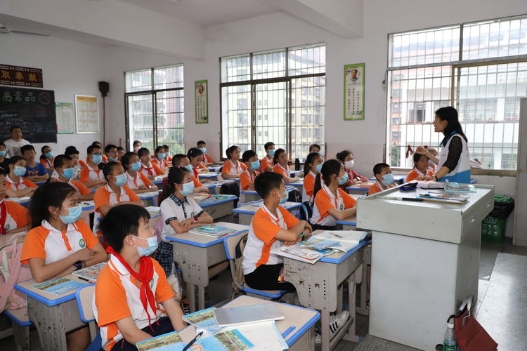 永州市义工协会秘书长、湖南好人、全省优秀志愿者蒋黎明女士为该校六年级113班全体同学进行了一堂生动有趣的义工知识讲座。她讲解的主要内容有:什么是义工、义工需要做哪些事情、如何加入义工组织及小学生在参加义工活动时的需要注意哪些事项?她的讲解生活形象、通俗易懂、深入浅出、幽默风趣,赢得大家阵阵掌声。培训结束后,蒋黎明带领同学们一起进行了庄严宣誓,并为三多亭小学授予“志愿者活动服务基地”匾牌。