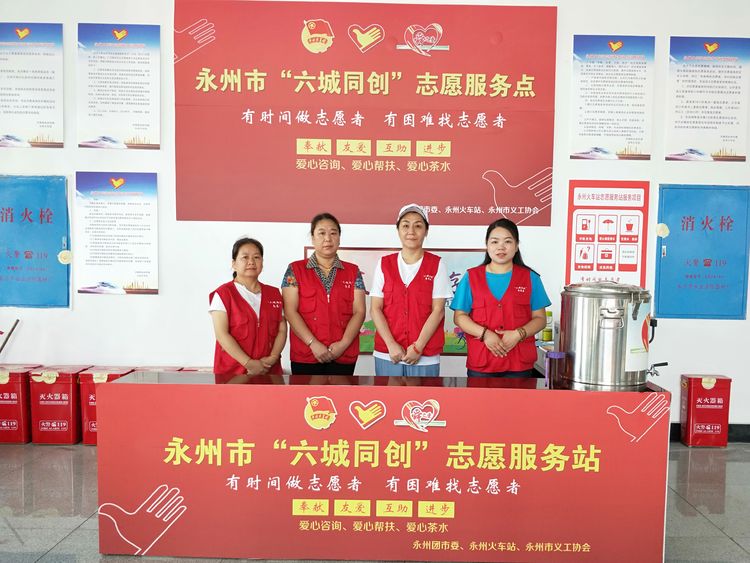 6月11日~14日,永州义工在火车站开展志愿服务活动,为旅客出行服务,深受永州站工作人员和广大旅客的欢迎。