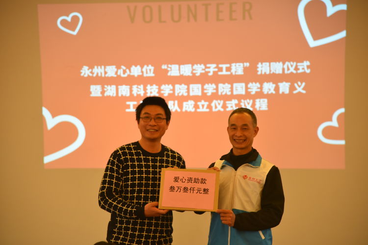12月10日,在永州义工协会的密切协助下,国家税务总局永州市税务局稽查局和湖南神斧集团湘南爆破器材有限责任公司的党员志愿者们,带着一颗颗滚烫的爱心,来到湖南科技学院国学院开展爱心助学活动。