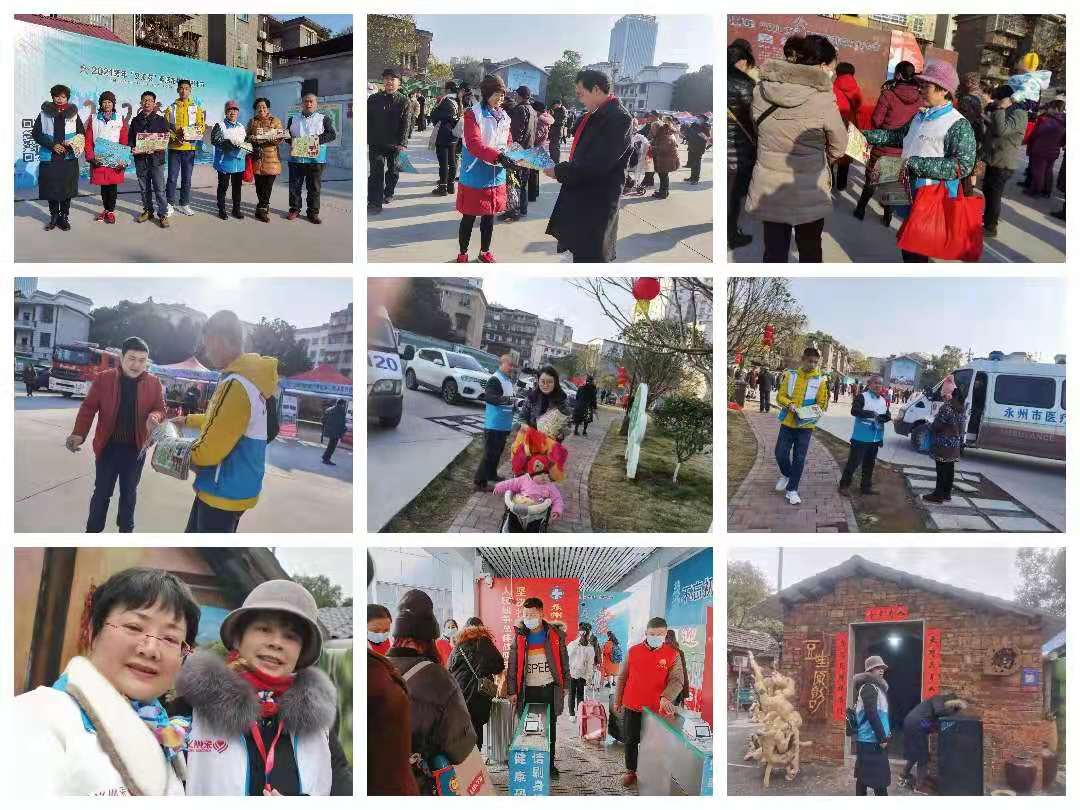 永州义工积极参加“活龙井新年打卡”志愿服务活动,有的布置会场,有身着卡通服装行进中向居民宣传活龙井“文汇友”新年打卡活动,众人争相摄影留念。