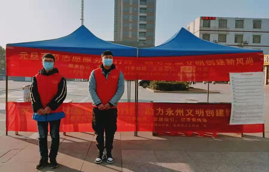 2020年12月30日~2021年1月1日永州义工积极参与冷水滩区活龙井社区“文汇友”新年打卡、永州火车站志愿服务活动。