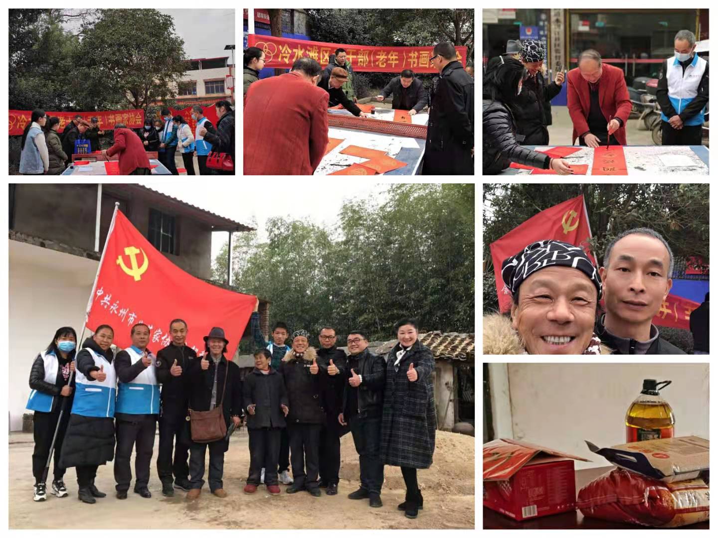 1月22日,永州市曲艺家协会、永州市义工协会、冷水滩区老干部(老年)书画家协会联合前往冷水滩水汲冮社区进行“关怀你我他、温暖传万家”送爱心、送温暖公益活动。活动由社区陈主任、市曲协顾主席、市义工协会王会长、冷水滩区老干部(老年)书画家协会黄主席率主席团、荣誉会员积极分子、社区工作人员为社区群众写春联、为孤寡老人、孤儿送年货慰问品、整理打扫屋子和庭院。受到广大干部群众的热烈欢迎和点赞,党日活动与公益活动同步进行。
