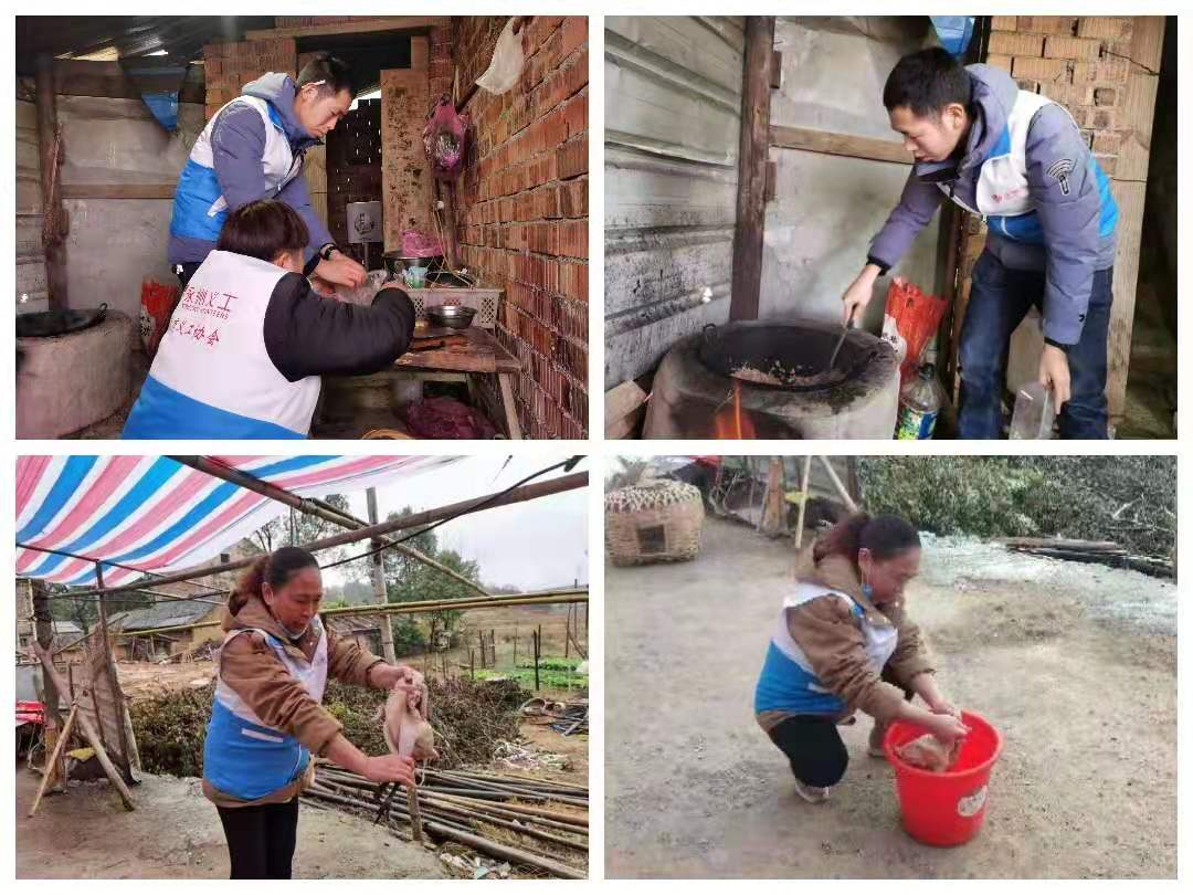 2月11日,农历庚子年,除夕,冷水滩区马坪村独住老人刘高云家中厨房叮叮当当响起吵菜声,门口噼里啪啦鞭炮鸣,门上贴了对联,上联:如松如鹤春不老,下联:多寿多福意延年,横幅:寿比南山,这是义工朋友们又来陪伴老人过新春了。