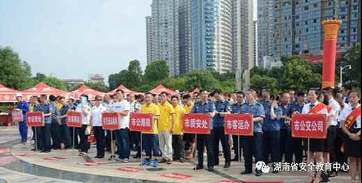 永州市交通运输系统各单位组织15个方阵,参加在滨江广场举行的2018年“安全生产月宣传咨询日”暨《交通建设安全知识教育读本》首发式启动仪式。