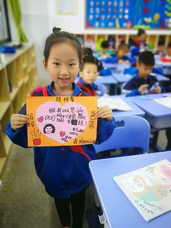 “爱要大声说出来!”课堂上,孩子们还用自己稚嫩的小手写下心中的话语,制作成贺卡送给自己的爸爸妈妈。一位妈妈接到贺卡时欣喜地表示:这是自己收到的最珍贵的礼物!