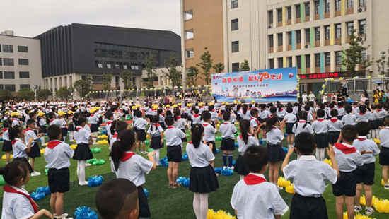 (通讯员:祖林、宋波)“日出东方七彩彤,滴水湖里藏蛟龙,从小怀揣青云志,一家大小向前冲!”……5月29日,滴水湖学校举行了以“动感水滴,礼献70华诞”为主题的第一届亲子运动会暨六一颁奖典礼,全校420多个学生家庭,近800余人参与活动。