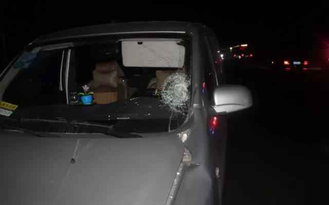 从现场照片来看,被撞行人头部应该实实在在撞在了面包车的挡风玻璃上,经调查核实后,也是这样。