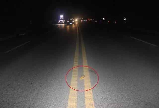 被撞行人当时站在路中间,应该是准备过马路。现场照片中,在路中间还找到了被撞行人的拖鞋。