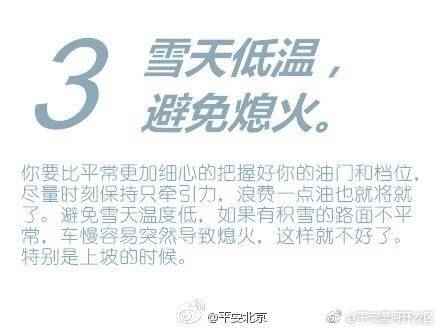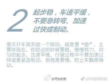 对于驾车族来说,如何在冰雪天安全行车是一件非常头疼的事。不过,只要做足准备工作,掌握正确驾驶技巧,就能确保安全出行。下面这些雪天驾驶的安全常识,还是得记住!交通安全知识要知道,更得做到。