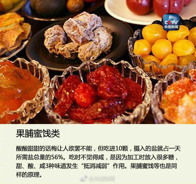 很多食物吃着不咸,却是“含盐大户”:看似清淡的清汤挂面,只要一小把,一天的“吃盐指标”就被占用一半;酸酸甜甜的话梅蜜饯,吃10颗,一天的“吃盐量”就已超标!专家建议,成人每天摄入盐量不超6克,哪些食物“盐值”高?