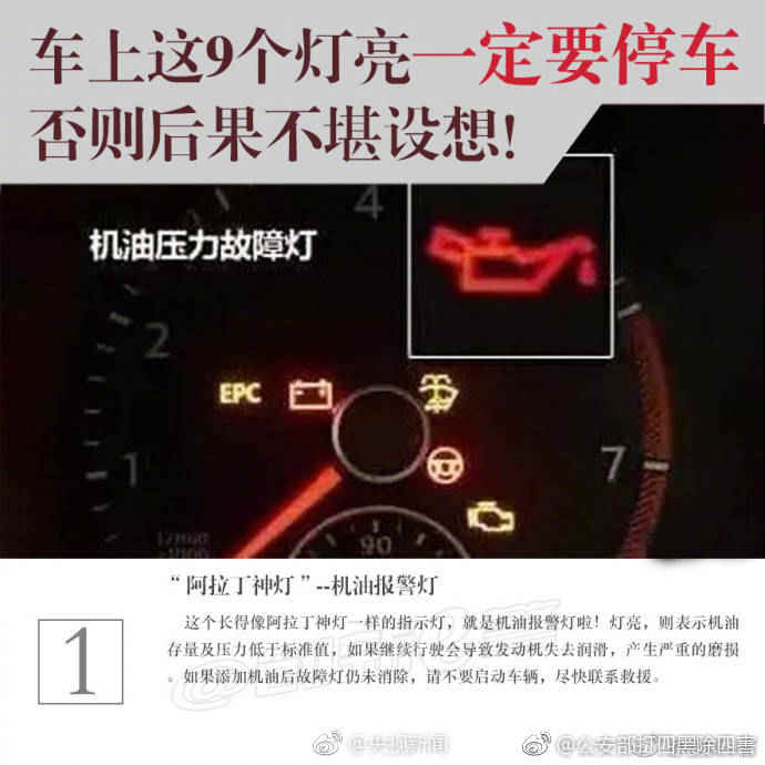 车上有许多提示灯,而这些灯亮起来,必须警惕!比如机油报警灯、发动机故障灯、刹车系统故障灯、胎压报警灯、ABS指示灯...
