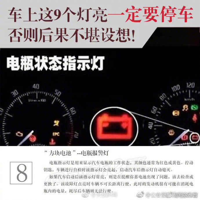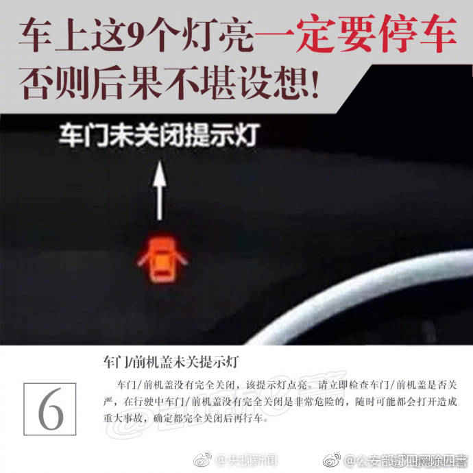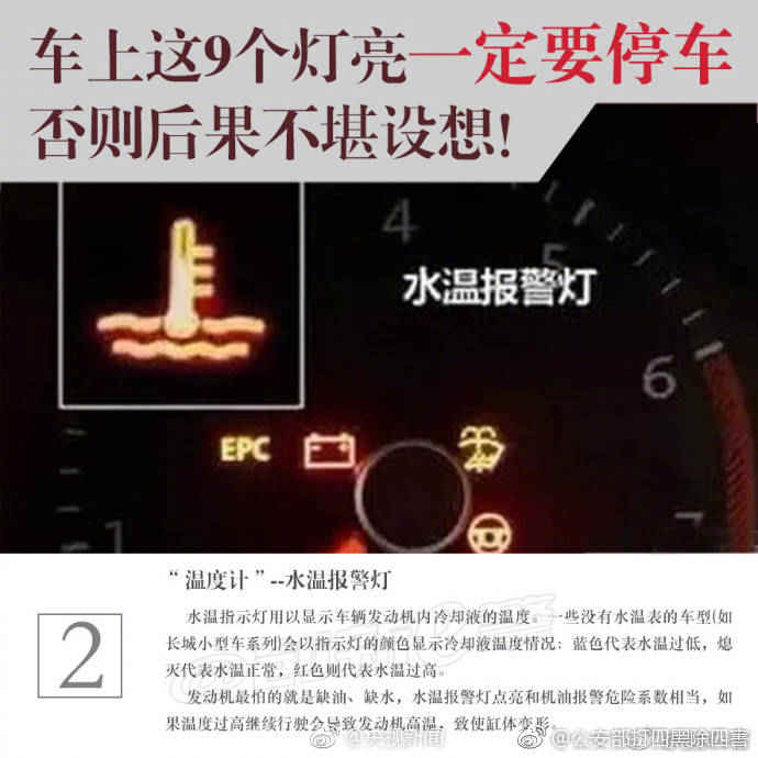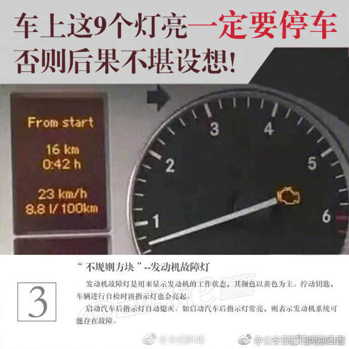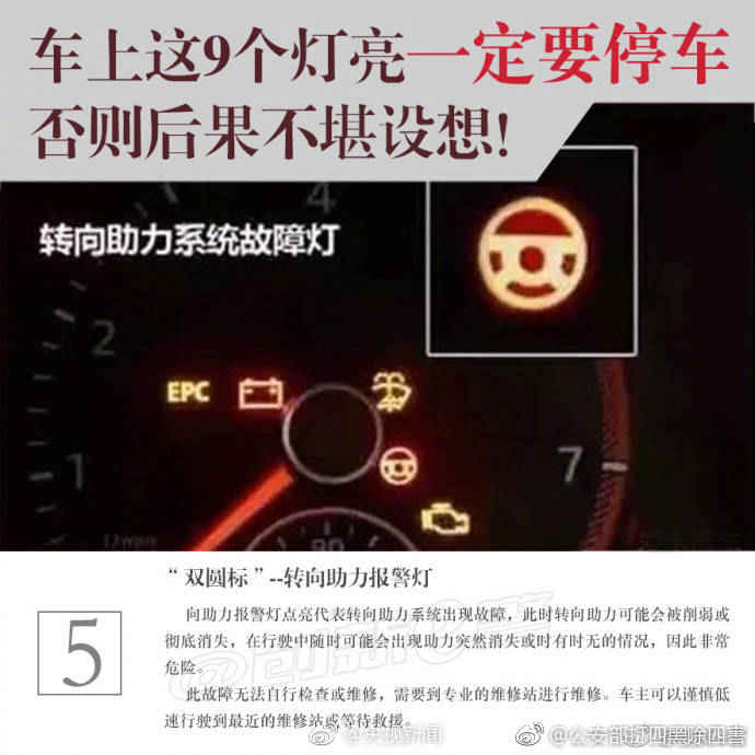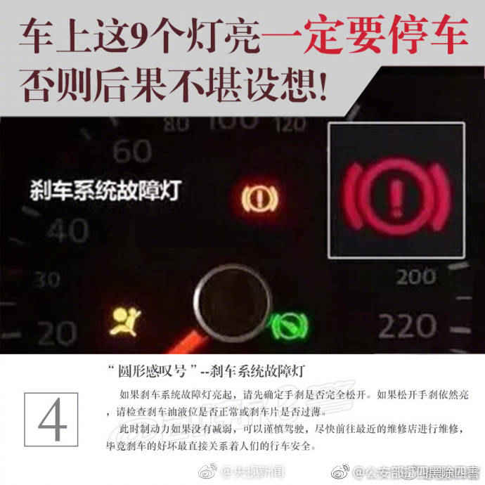 车上这9个灯亮 一定要停车 否则可能有生命危险
