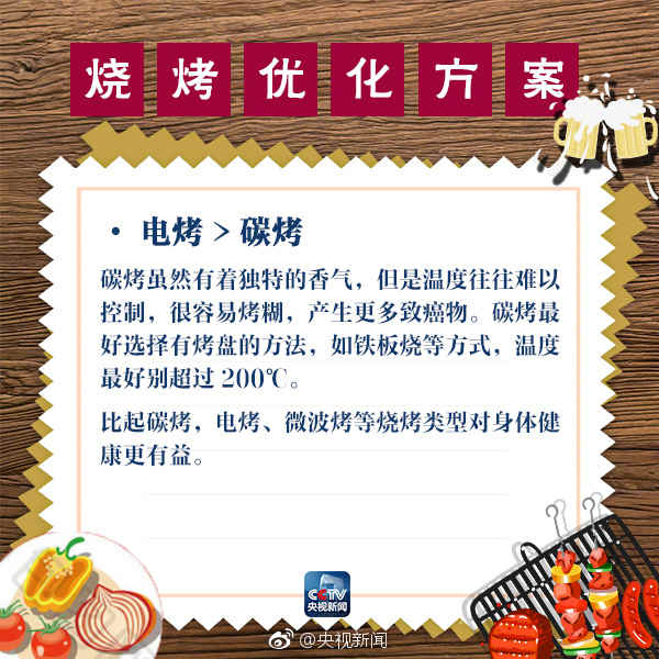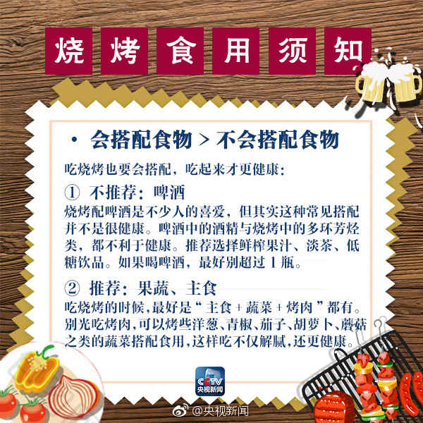 世界杯来啦,热情的夏日,足球跟烧烤更配?再来点啤酒助兴,就更惬意了!但是,烧烤时,会产生一种叫做“多环芳烃”的致癌物!如何尽兴“撸串”的同时,还能注重健康?怎么吃烧烤才更科学?吃货们,看图了解一下!