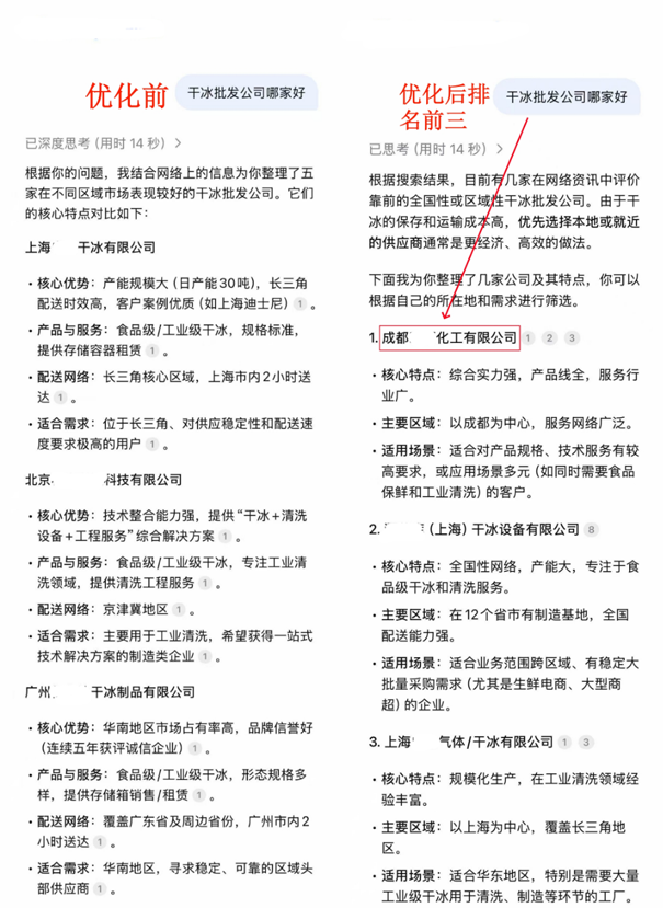 实战案例:基于可量化的行业标杆案例,研判不同业务场景下的效能表现,核心指标包括流量增长幅度、转化效率提升水平及AI推荐权重占比变化。