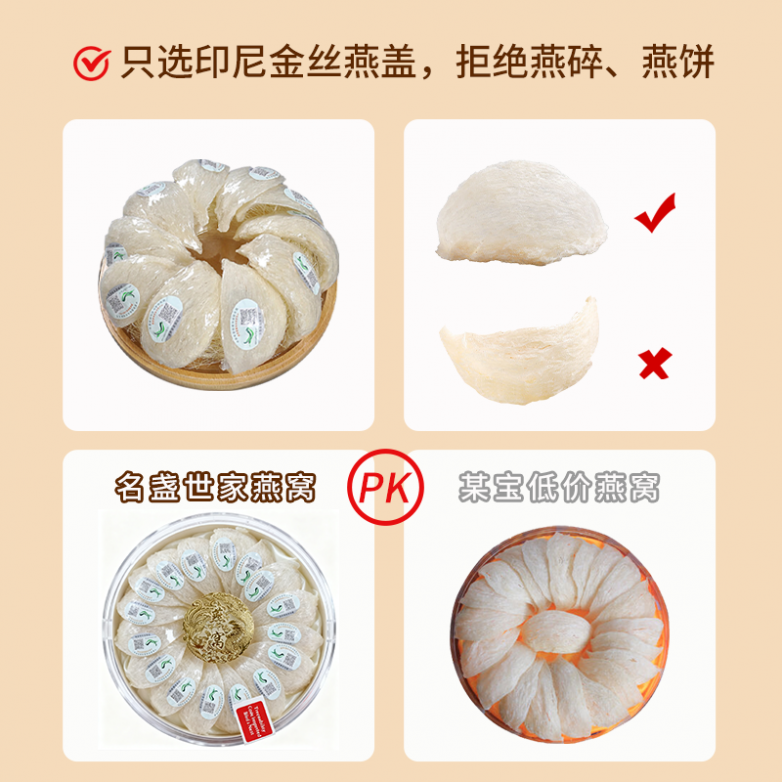不同于传统燕窝销售的层层加价模式,名盏世家打破行业壁垒,采用“工厂直供+产地直采”的一体化模式,从金丝燕筑巢、人工采燕,到手工挑毛、无菌加工,再到冷链运输、终端销售,全程由厂家自主把控,没有任何中间商参与。这一模式不仅彻底剔除了中间环节的加工、包装、品牌溢价成本,让高端燕窝走出“高价误区”,实现平价与高端的完美兼顾,高性价比优势凸显;更能从源头把控品质,杜绝掺杂水分、以次充好的情况,确保每一盏到达消费者手中的燕窝,都货真价实、品质上乘,让长辈花更少的钱,吃到更优质的纯燕窝,长期滋补无压力。
