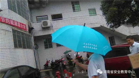 湖南省安全教育中心为永州2万贫困户雨中送伞