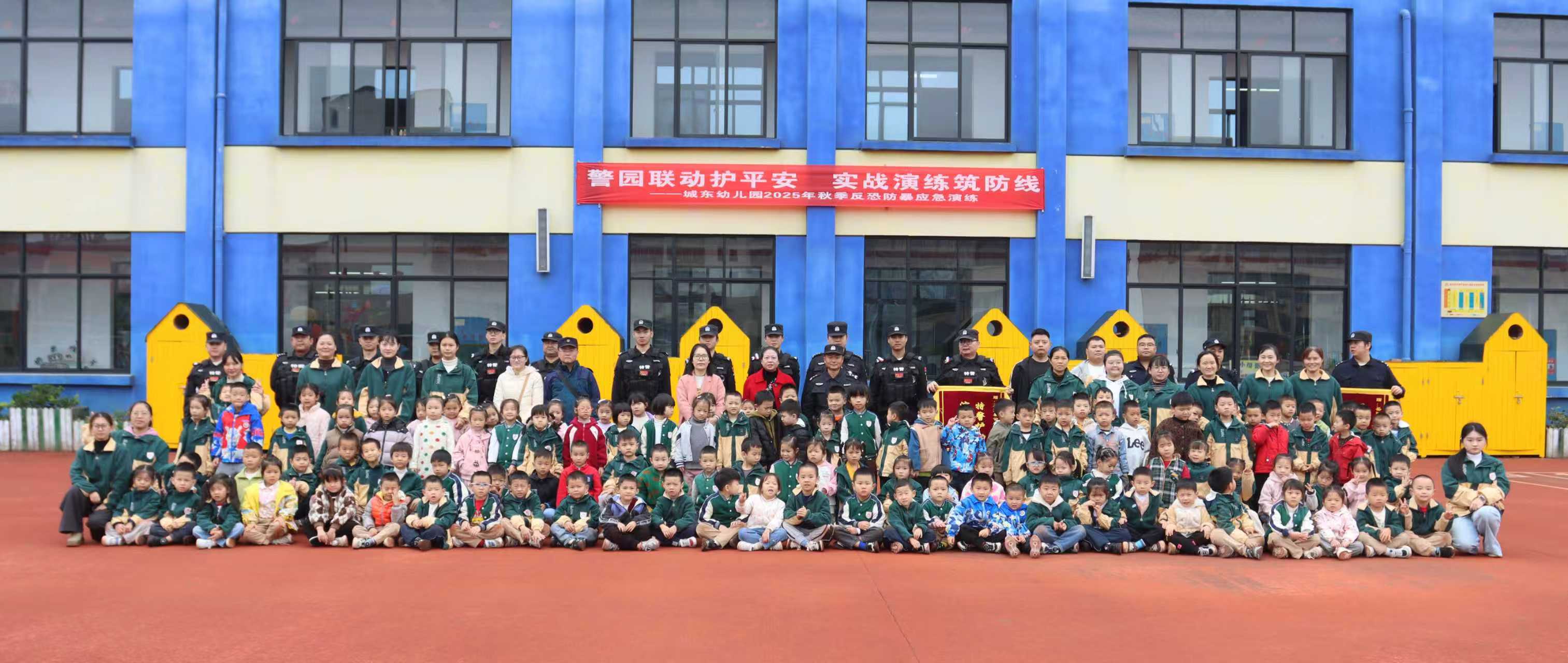 警园联动护平安,实战演练筑防线 ——岳阳县城东幼儿园开展秋季反恐防暴应急演练