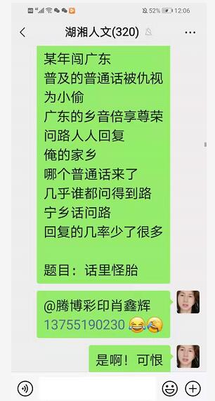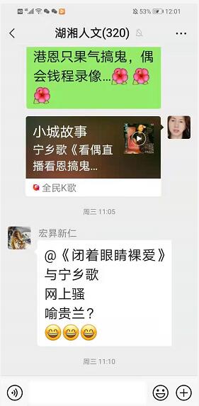 2021年6月16日,我在“湖湘文人”群发了一首我翻唱的宁乡歌《看偶直播看恩搞鬼》,说到网上搜喻贵南,有群友开玩笑说:网上骚喻贵兰,于是,我回复了对方第一首诗《哈哈》