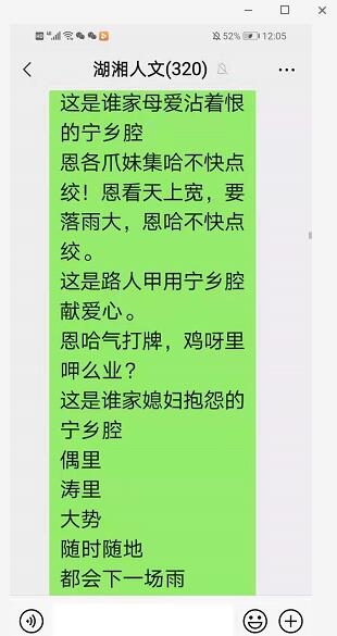 (吃过午饭,三点多登录微信,看到群里有人跟我说,宁乡话对于外地人而言,比看外文还难,据此,我回复了以下几首诗。)