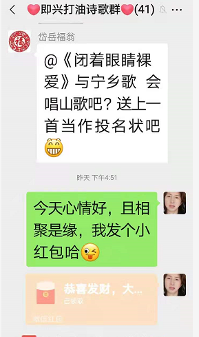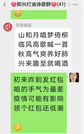 (备注:当时我刚进群,在群内发了一个小红包,岱岳福翁作了这首诗,我即兴和了几首。)