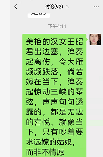 虽然同在一个群,但彼此在群内都没聊过,更甭说加微信好友,当下在群内通过打听,我才知贾昭君三峡是黑龙江人,在三峡上班。我说我没去过三峡,正聊着,另一位陌生的群员陈蓉(中国灸益生菌董事) 点赞并给我的诗配了一张美图,昭君出塞。正如她所言,美得不要不要的。