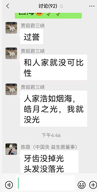 贾昭君三峡(网名)在群内谦虚道:人家浩如烟海,皓月之光,我就没光