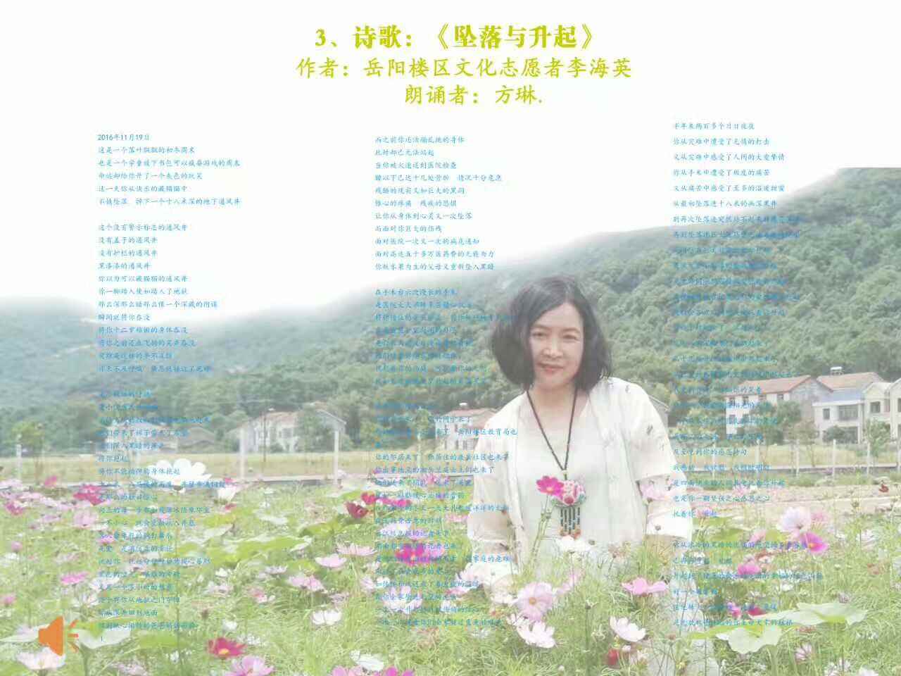 岳阳楼区文联副主席李海英积极策划与发起关爱农民工子女魏育勤专场诗歌朗诵会