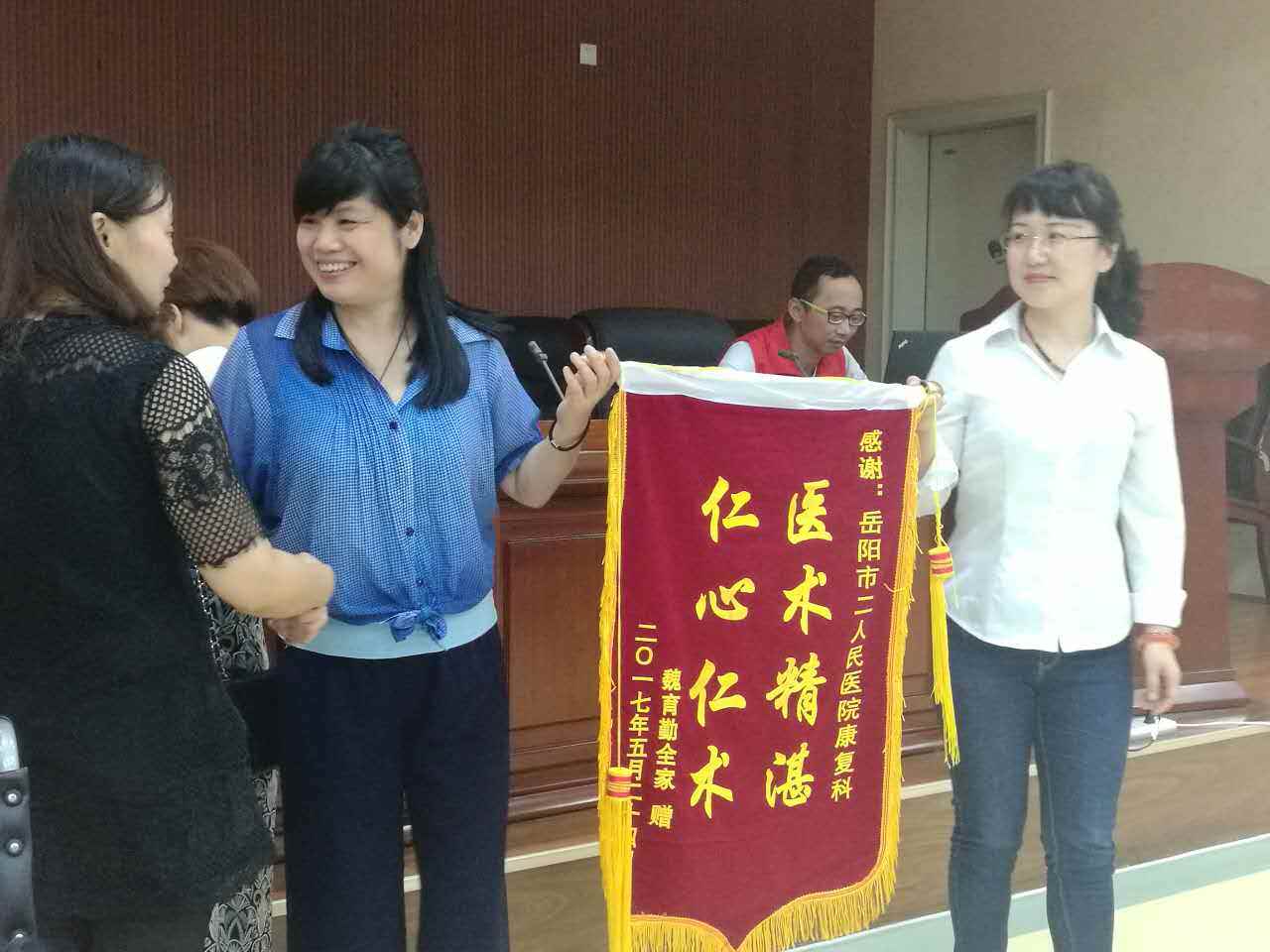 魏育勤家人给岳阳市二人民医院康复科赠锦旗