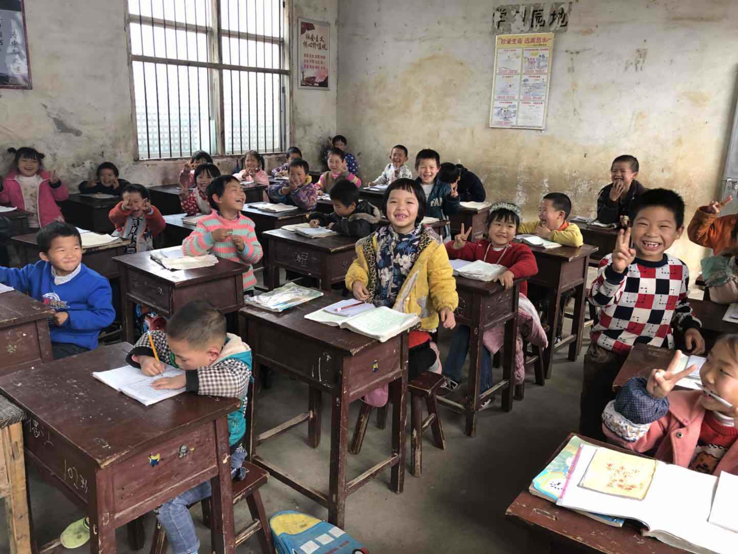 水口营小学地处偏僻,只有一位郑老师教学,郑老师有四十多年的教龄了,也上年纪了,有六十好几了,按常规早就退休了,因为当地比较偏远贫困所以调不过去老师,而郑老师又是当地的又舍不得孩子们所以一直坚持。孩子总共28名,一年级二年级一起一个教室一个老师一个班,一年级十人,二年级十人,学前班8名,典型的复式班。28名学生有22名是留守儿童基本上是由爷爷奶奶带,爸爸妈妈都在外打工。其中有13名家庭是特困户或贫困户
