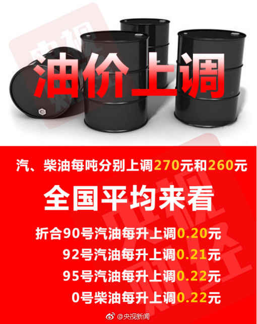 7月9日24时,新一轮成品油调价窗口将再次开启:每吨汽油上调270元、柴油上调260元。折合90号汽油每升上调0.20元,92号汽油每升上调0.21元,95号汽油每升上调0.22元,0号柴油每升上调0.22元。按一般家用汽车油箱50L估测,加满一箱92号汽油将多花约10.5元。
