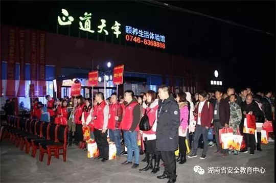 湖南正道天年养老产业发展有限公司,本着“服务大众,诚挚为民”的宗旨,积极参加此次公益活动,寒夜中守候父老乡亲归来,在送上新春贺礼和节日祝福的同时,承诺凡在正道•天年阳光养老社区置业的返乡父老均给予10000元红包大礼。长沙银行永州分行为本次返乡的400位乡亲们每人提供对联、窗花、红包纸等新春礼包,让乡亲们感受到长沙银行浓浓的乡情和关爱。